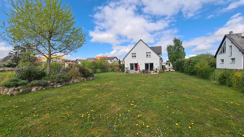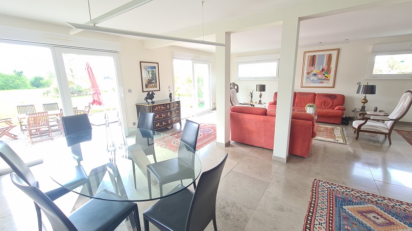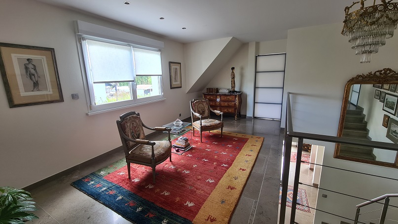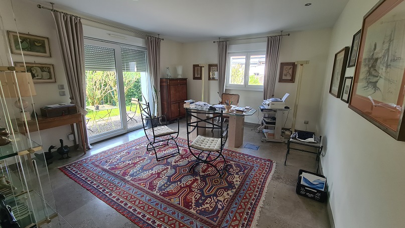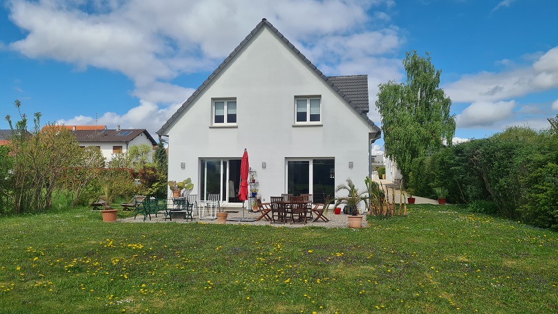 Magnifique villa à Hésingue sur 12 ares arborés, très lumineuse avec prestations de standing, proche de la frontière Suisse et des commerces, piscinable.