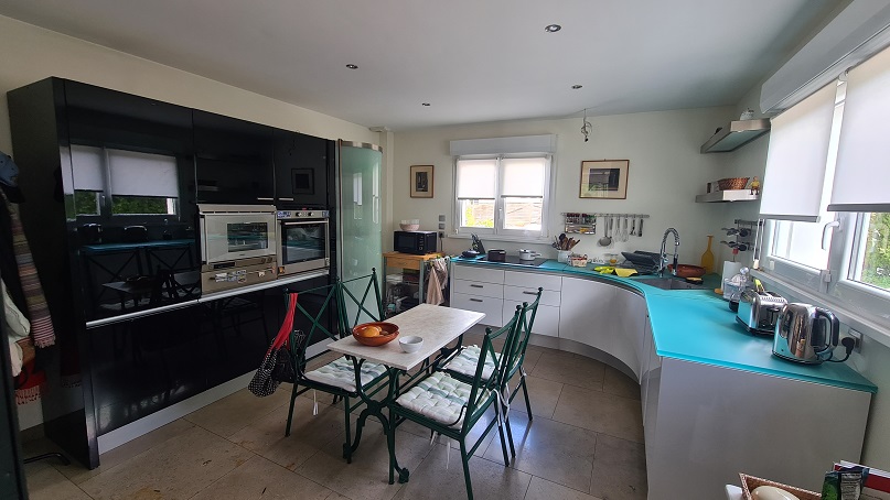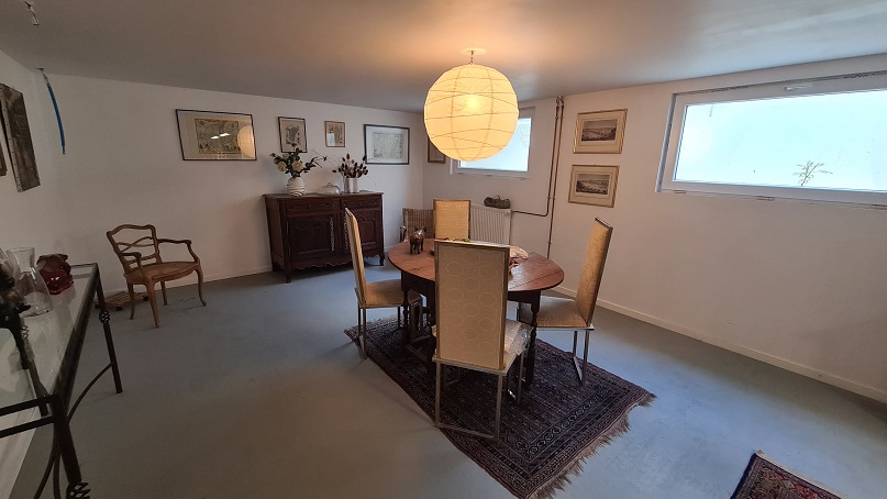 Sous-sol : Une pièce bibliothèque, une pièce aménagée en coin repas, un garage deux voitures côte à côte, une buanderie/chaufferie : chaudière Gaz VIESSMANN 2014 et un grand cellier.