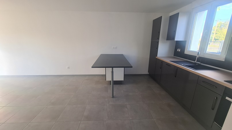 La maison se compose au rez de chaussée :  Une entrée – Un beau séjour avec sortie terrasse – Une cuisine équipée – Un toilette indépendant.