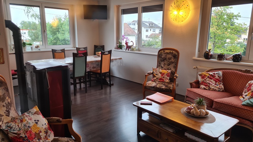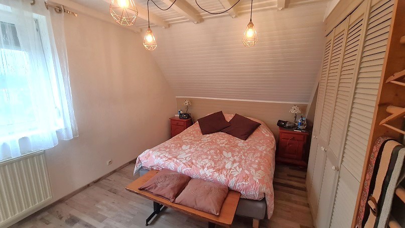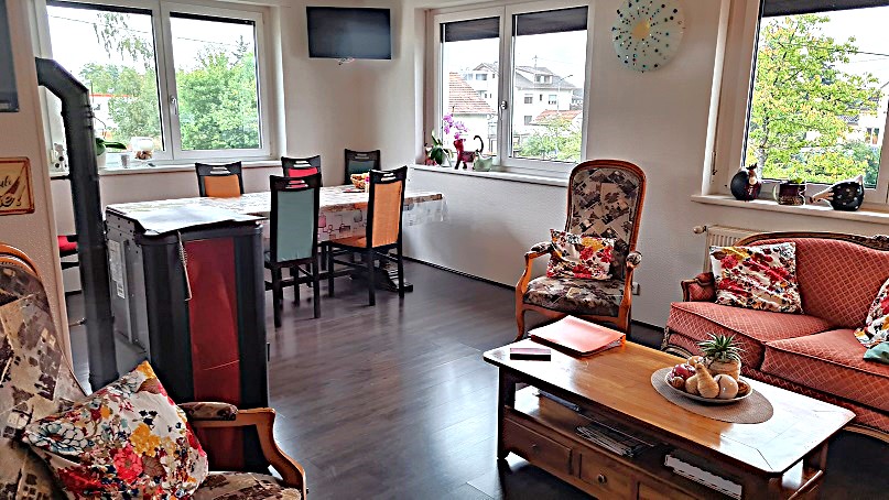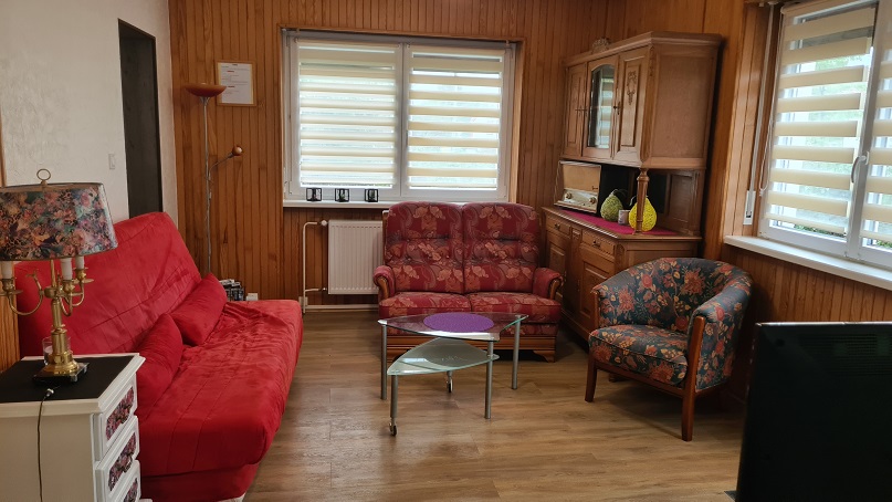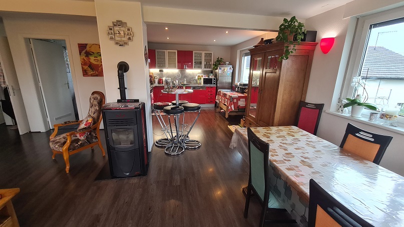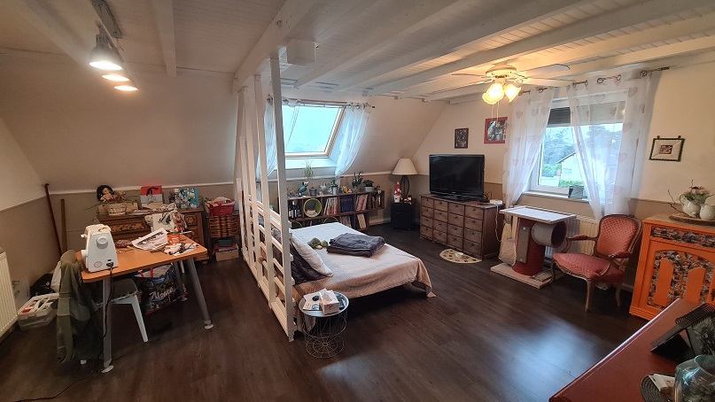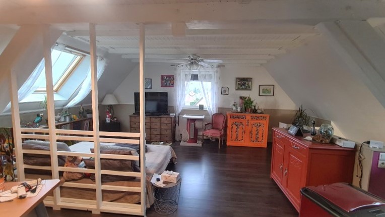 - Une grande pièce sous comble (salon/ bureau) avec un poêle à pellet